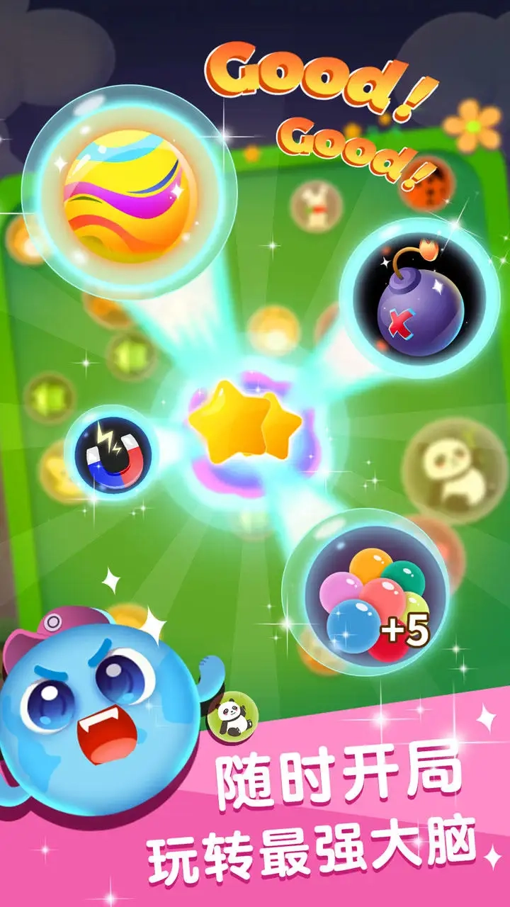 画面里不同颜色的元素频繁出现,玩家能自由合并它们来获取分数。游戏中的元素都采用拟人化的造型,模样十分可爱。虽然整体难度不高,但画面制作精美,让人玩起来爱不释手。