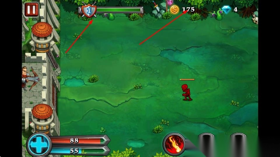 射击与防御的双重操作玩法:你可以操控弓箭或弩箭向怪物发起射击,同时在关键点位布置防御塔,构建起双重防御阵线。操作方式为通过手指滑动来瞄准怪物,点击屏幕释放射击,再配合防御塔的自动攻击,共同抵御怪物侵袭。