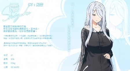 3、东云雫:三姐妹中的老么,年龄21岁,身高164cm,CV为风音,平常没有明显的情绪变化,室内派,偶尔会很毒舌,似乎很喜欢看书,平常总是呆在家里、不修边幅,但却是个美人,私底下正在创作爱情小说,但始终没有勇气给其他人评论或观看,喜欢摇滚杂志,讨厌料理和笑话话题,与雫一起讨论小说、学习、分享心得,最终使雫逐渐迷上自己。