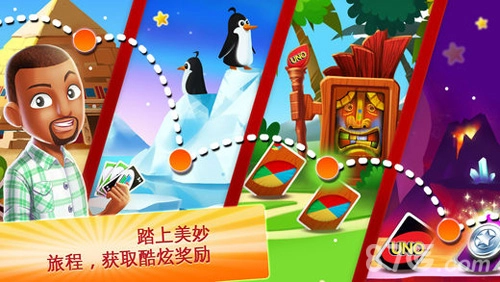 UNO游戏中还有一系列创新的3D场景关卡,这些环球大冒险将定期开启。现有包括加州、纽约、日本在内的超多内容,不仅闯关赢取丰厚奖励,还能体验奇妙的剧情!