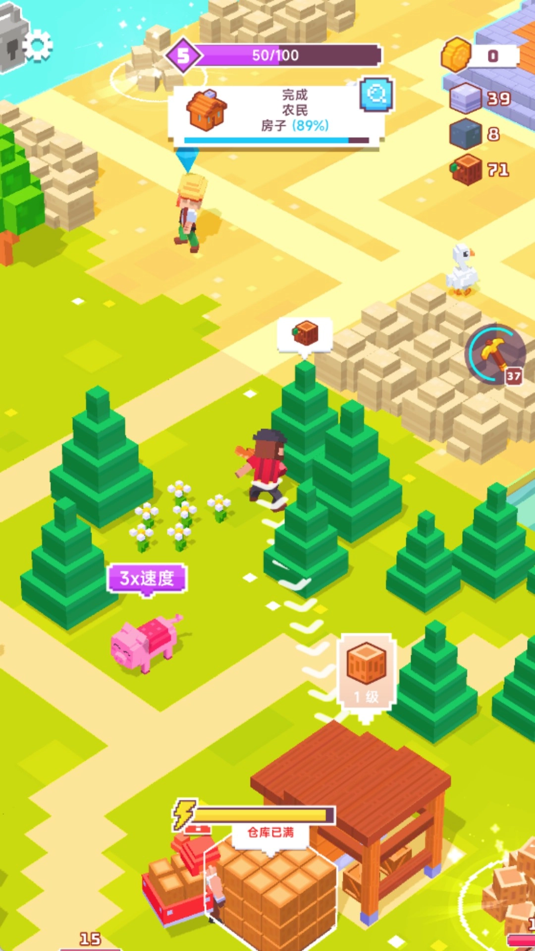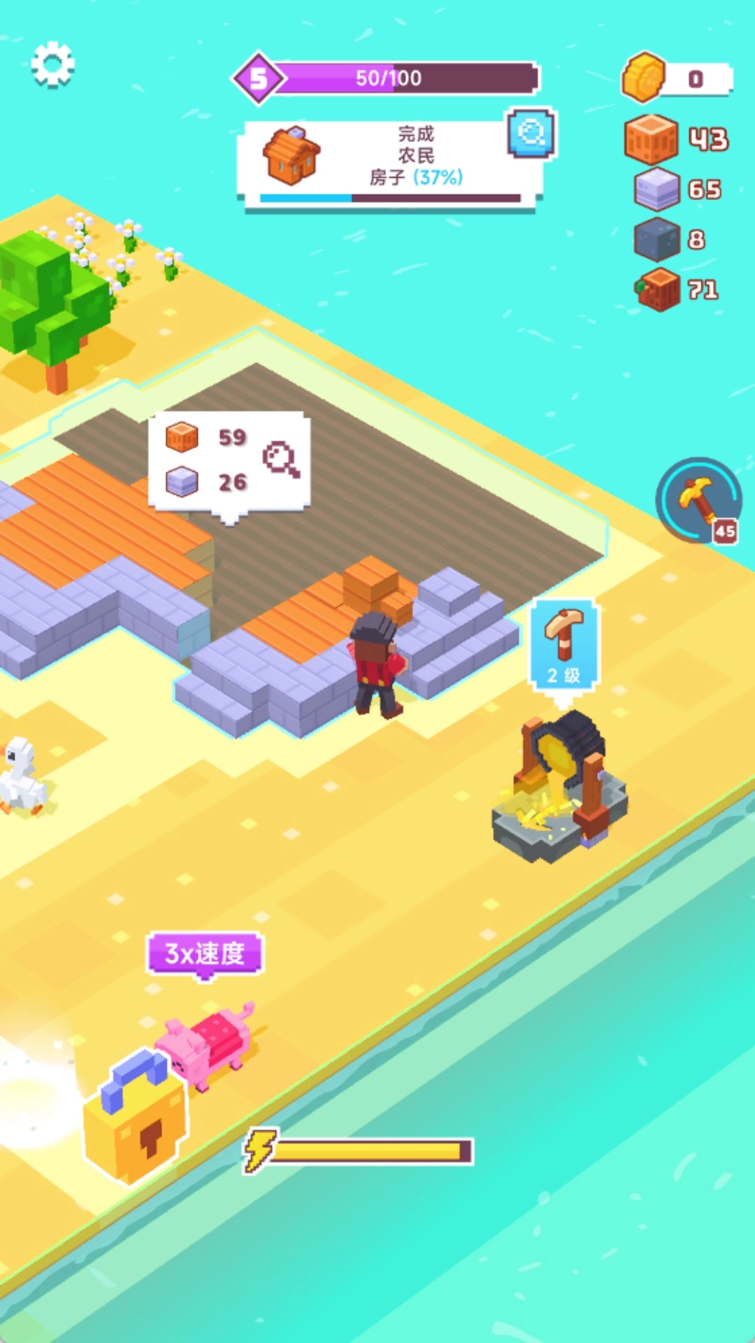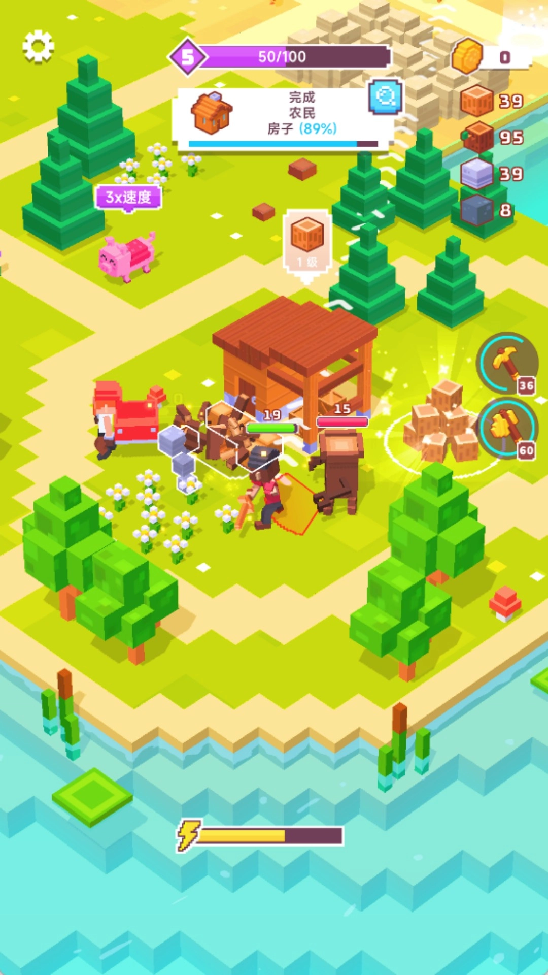 2、收集充足的木材,尽快完成地板的建造,可通过加速模式加快木材采收速度。