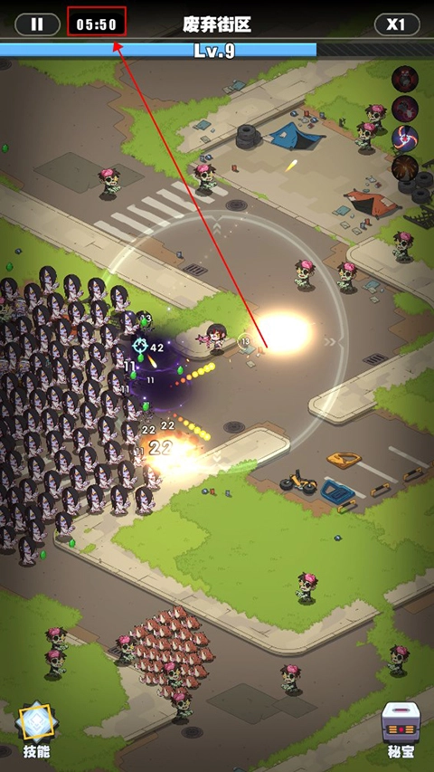 游戏左上角显示的是冒险时间,玩家得在这段时间里扛住僵尸的攻击,把最后那只BOSS解决掉就能赢了。