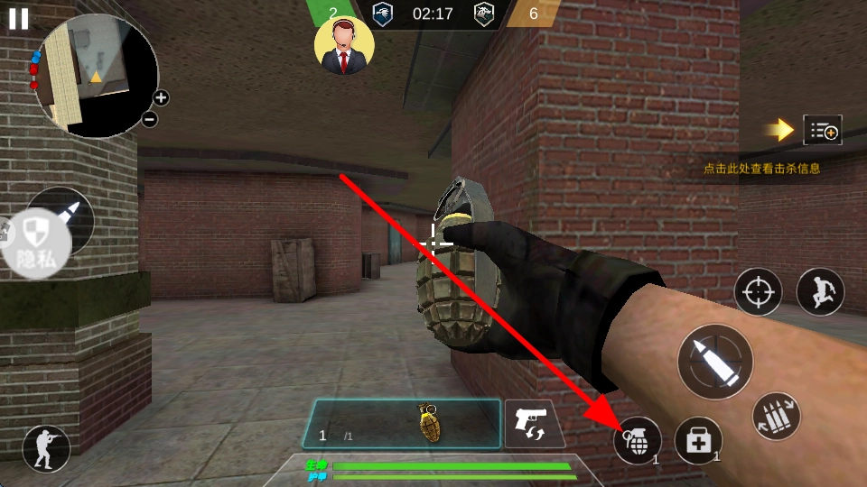 当身处掩体后方无法直接射击敌人时,只需点击手雷的使用按钮,对准目标所在区域投掷出去,就能对该范围内的敌人造成伤害。
