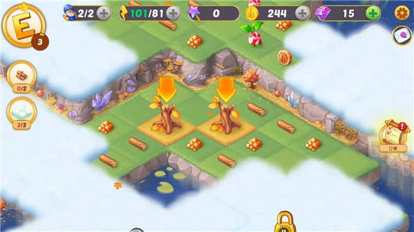 把木头合并起来,就能得到小木屋;再将小木屋合并,就能建成木头豪宅。