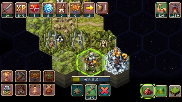 正式开始后,点击地图上的【地块】,接着点击下方的【靴子】按钮,就能指挥角色移动。每个地块都有不一样的物品可供探索。