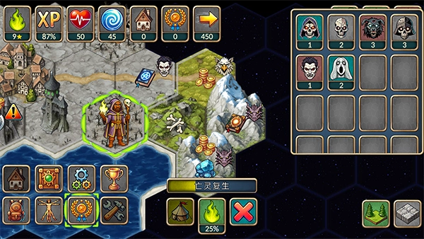 当地块上出现魔物时,玩家需击败魔物才能获取奖励,可点击带有【剑】标识的按钮来讨伐魔物。