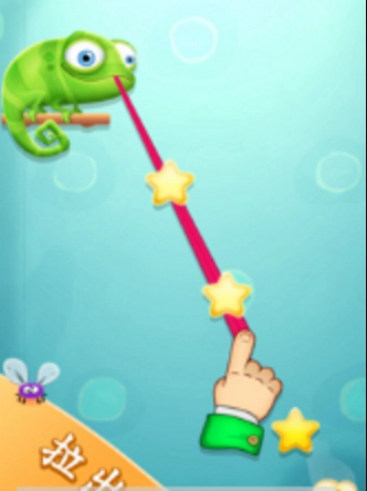 变色龙下方红按钮标注点击区域,引导游戏开始。