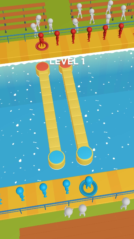 场景中会出现赛道,我们要把自己队伍的小人放到赛道上,小人每经过一个区域,该区域就会被染上颜色并标记为我方占领的区域。