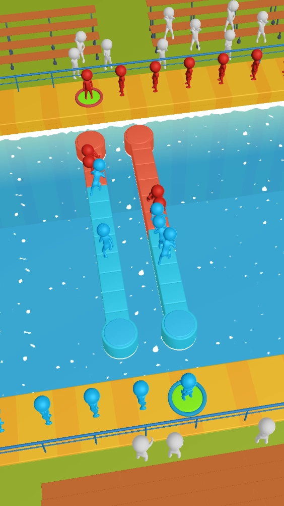 可以在其他赛道安排一些队员,以此分散对手的注意力,然后趁机继续在原本的赛道上部署队员,把对方推入水中就能赢得胜利。