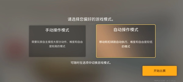 3、接着选择偏好的游戏模式,支持手动和自动两种,这里以自动操作模式为例;