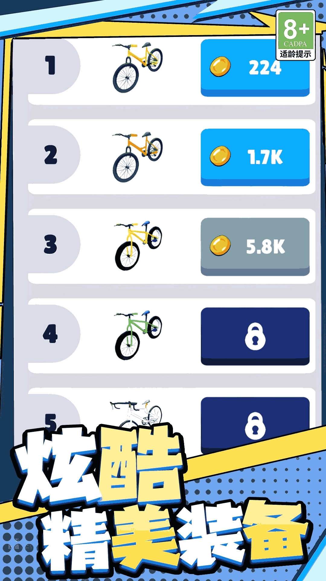 高阶自行车能够增强速度、耐久等核心属性,通过消耗竞速奖励可以提升车辆的性能上限,从而适配更复杂的赛道以及应对强劲的对手。