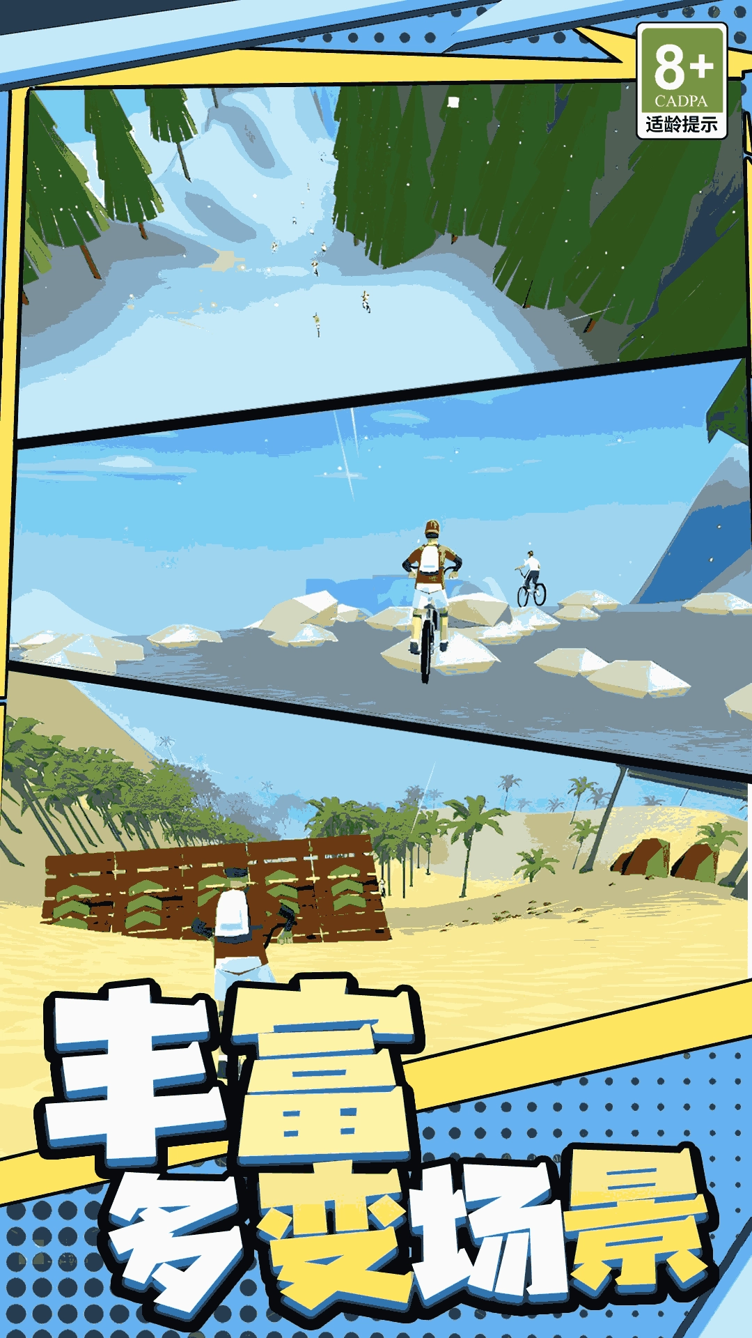 玩家可以借助跳台提升自行车的行进速度,同时还能利用多种特殊装置,以此在比赛中获得优势。