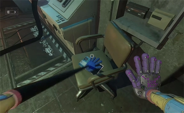 6、开门之后走里面还会有一个开关给他拉下来,往前走进去用蓝色手臂互动一下前面的开关,这里要触发三个开关才能有电流打通出口
