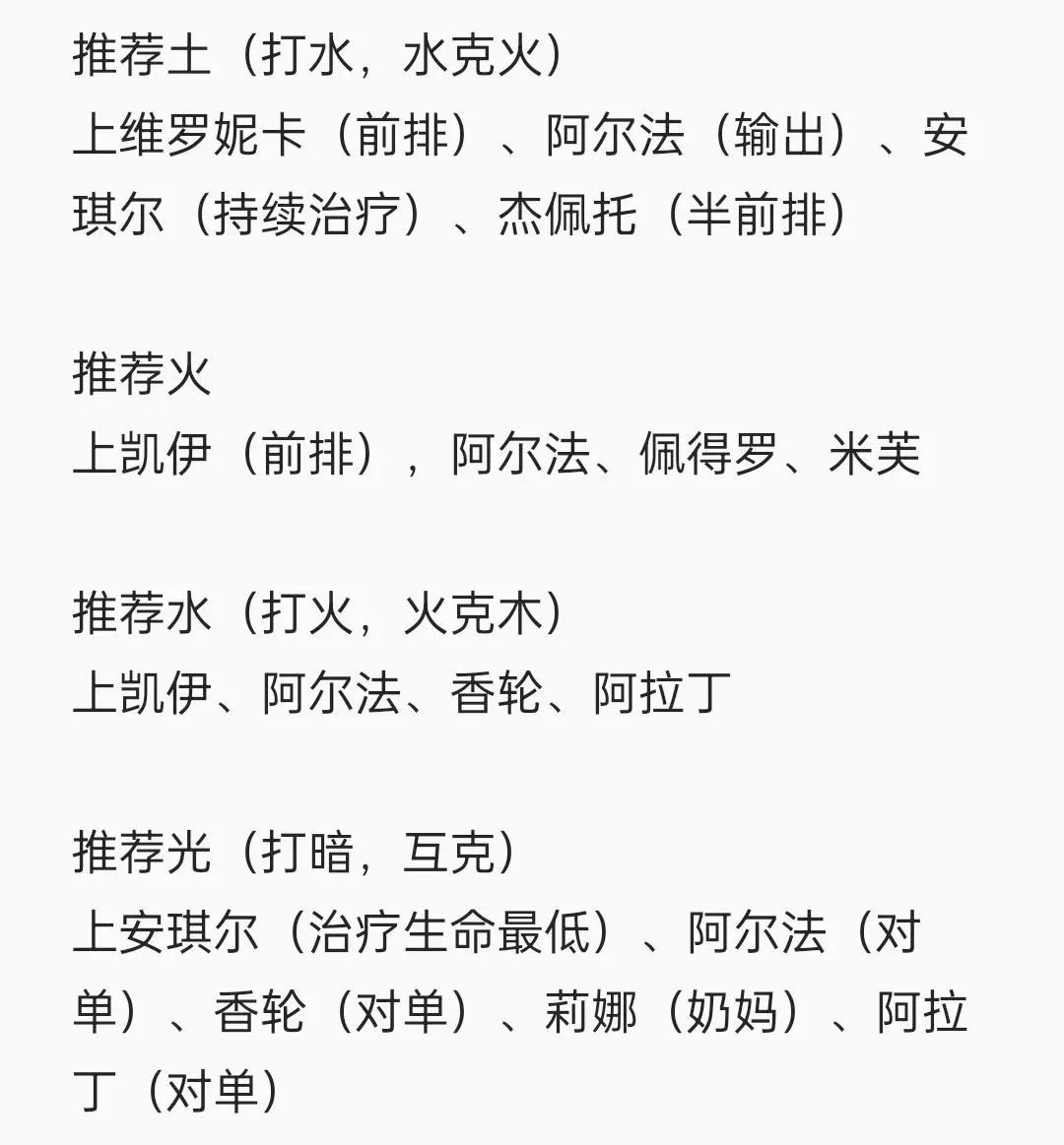 2. 队伍需包含不被克制的盾角色,或使用克制对方的输出位当盾。