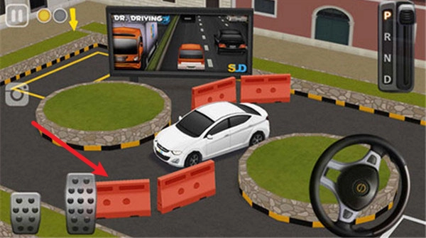 进入游戏后,我们会直接进入游戏的教学环节。首先,右侧的方向盘用于控制转向,左侧较长的踏板是油门,较短的踏板是刹车,而方向盘的上方则设有档位。