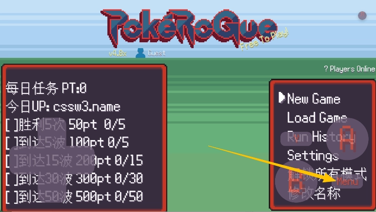 1、打开宝可梦肉鸽手机版,点击右下角的Menu。