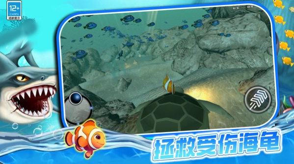 当遇到巨鱼时,从右屏向下滑动可以加速;同时,要借助贝壳群和沉船残骸来遮挡它的视线,务必在倒计时结束前到达蓝色的出口漩涡!