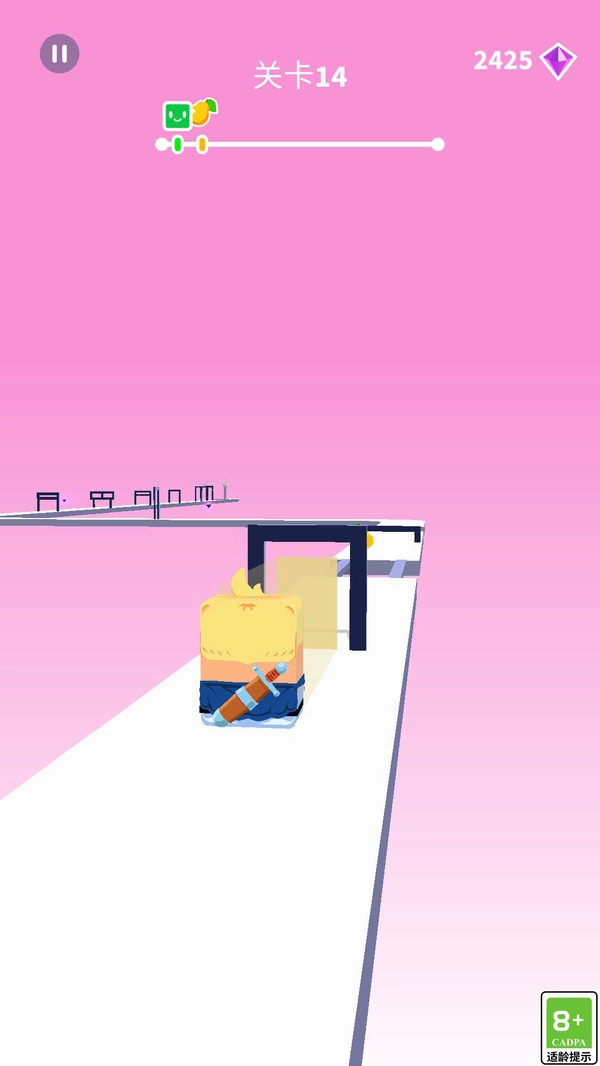 核心机制别具一格。果冻并非依靠跳跃或下蹲动作,而是借助改变自身形态来克服障碍。比如遇到低矮通道时,会向上滑动让果冻“变扁”。2、每个关卡的障碍排布都如同动态几何谜题,障碍类型十分丰富,既有静态的固定形状门洞,也有动态的上下移动横杆。3、采用色彩鲜亮、卡通风格的视觉设计,果冻造型圆润Q弹,变形与移动的动画流畅且充满物理质感。