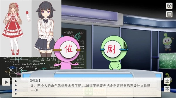 采用经典的视觉小说游戏玩法,并结合 “制作游戏” 这一全新挑战。