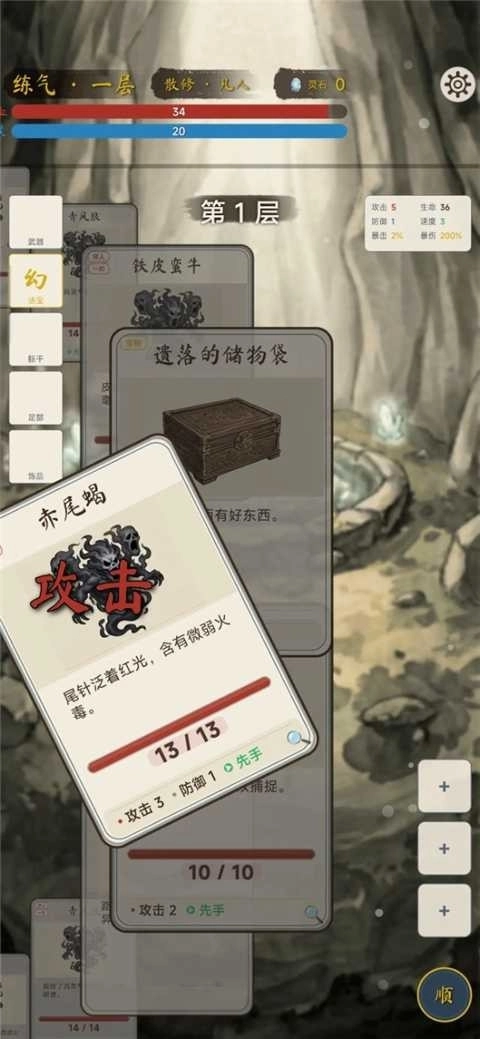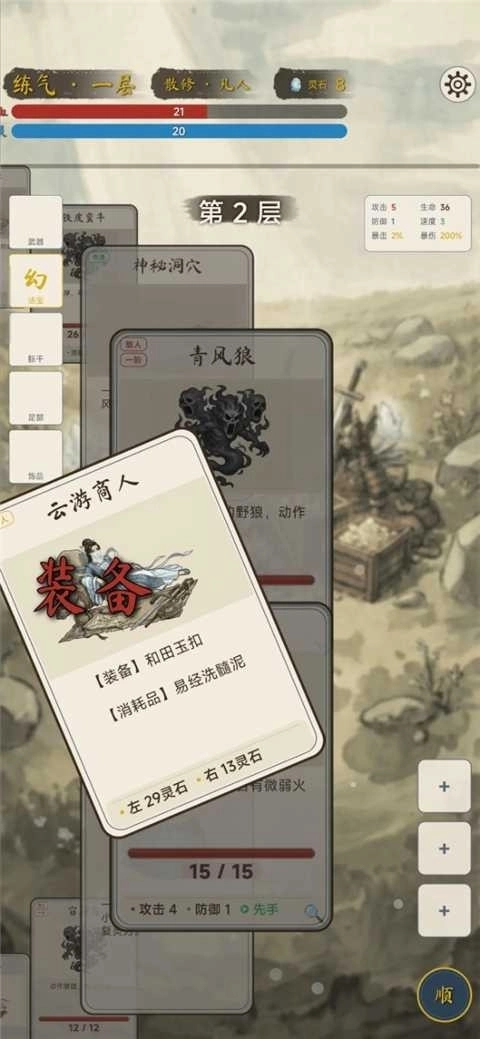 游戏严格遵循经典修仙设定,搭建起从“练气”到“飞升”的完整七重境界体系,使玩家能清晰体会到实力成长的每个阶段。