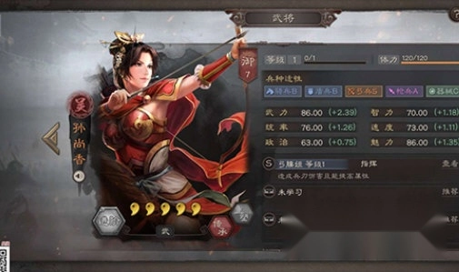 孙尚香:胜而益强胜战武略(第三层兵书),输出型选胜战收益高,胜而益强回血,胜战二回合增益稳定,武略提升普攻伤害。