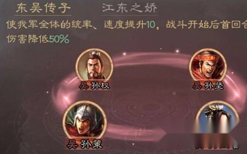 此阵容适合S3赛季吴国武将不全玩家,强度媲美甘宁吴弓,全能性更优,无需特定兵种,扮猪吃虎。有大吴弓或都督队者不必强组,以免拆解战法。