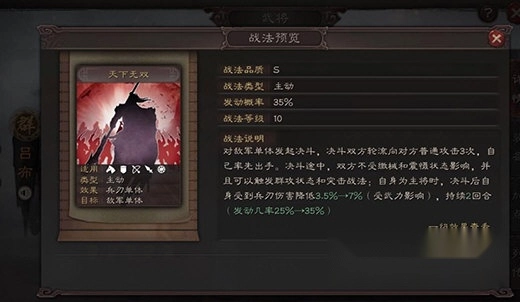 2、该战法强化防御和输出,主将发动率提高后,混搭流派兴起,重点包括贾诩队和吕布队。