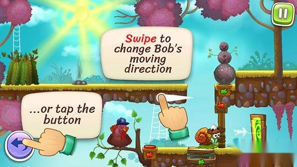 2、遇到障碍物阻挡去路时,可滑动屏幕或点击左下角的转向按钮,让鲍勃改变爬行方向。
