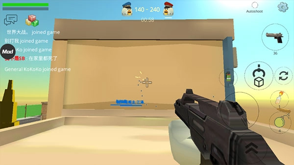 2. 移动左虚拟摇杆控制方向,右手点击射击图标开火