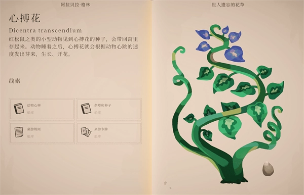 2、随后可打开柜子旁的包裹,获得一本重要的植物学书籍,书中不仅记录了庄园各个房间的分布,还收录了详细的植物图鉴,是后续探索与解谜的关键参考。