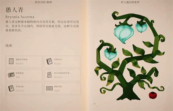 波坦尼庄园是一款精美的悬疑解谜冒险游戏,中文名为Botany Manor,玩家将扮演主角探索这座神秘的庄园,通过阅读书信等资料逐步了解主角阿拉贝拉的生活、事业及其面临的挑战,游戏融合了推理探案和园艺种植元素,玩家需要成功推理出条件后在游戏中进行操作,实践让种子萌芽开花的过程,游戏提供记事本功能用于记录和整理发现的线索,场景中仔细寻找并收集关键线索,这些线索以书信、笔记、海报等形式存在,是喜欢悬疑解谜和探索冒险游戏玩家不可错过的精品之作。