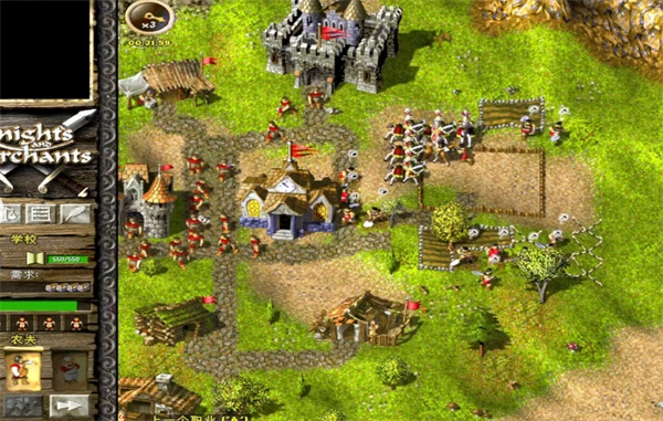 大规模战役依赖兵种协同,第二十关建造哨塔防御路口。长戟兵和弩手组合对抗骑士,生产不能中断以补充损耗。