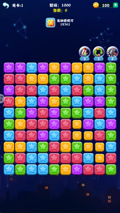1. 经典点击消除机制,相同颜色星星连接后点击消失