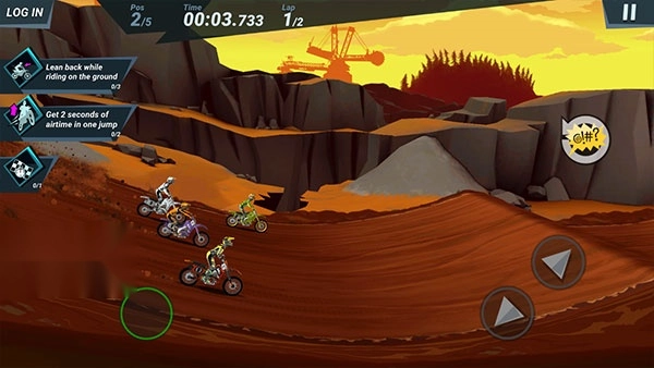 1、触屏控制方案:左下角红绿双键控制制动/油门,右侧摇杆调节车身俯仰角度,重力感应辅助过弯。