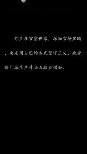 然后在这里选择你的出生选项,不同的出生设定会对游戏里的收益产生不同影响。