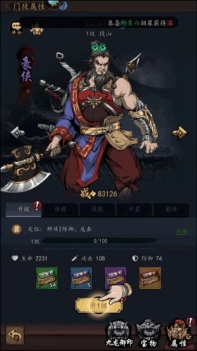 在门徒的属性界面里,选中并点击“升1级”的选项,来对该门徒进行培养。