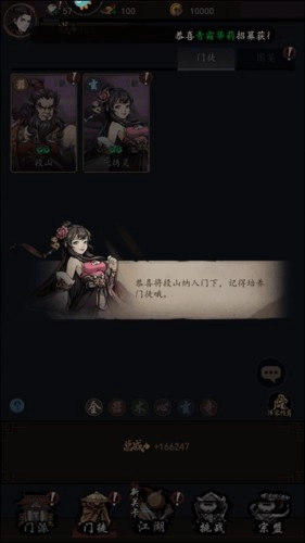 启动游戏后,完成一场战斗,主角就会迎来首位武士加入队伍的机会,此时只需选择并点击“邀请加入门派”这个选项即可。