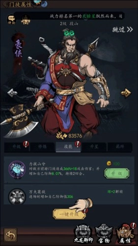 在技能界面找到并点击“一键升级”选项,就能完成武人的升级操作。