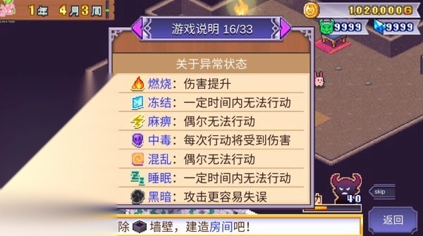 初期建造多个10人容量大房间,后期勇者军团规模达四五十人时小房间难以抵御。物理系前期强势,魔法系后期发力,食物相性高的魔物如小黄龙通用性强。