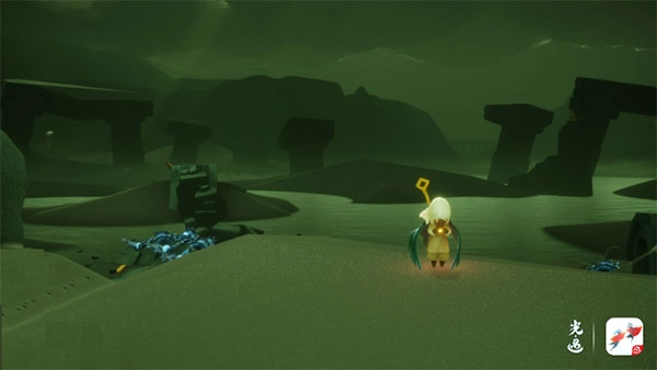 天空王国的第五个场景里,旅人们从巨大的漩涡纵身跃下,便会坠入一片阴冷的荒芜之地。在暮土,玩家将首次体验到“失去”的滋味。