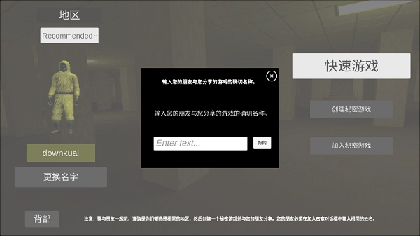 多人游戏选择,编辑昵称后创建秘密房间。