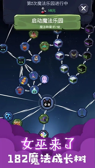 支持离线收益,女巫自动生产糖果和金币,时间越长积累越多,适合移动端碎片化体验。