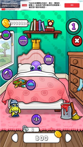 莫伊有四项基础需求,分别是饥饿度、清洁度、精力值和心情值。你得通过喂食、洗澡、哄睡以及玩耍这些方式,来维持好这些指标。2、点击游戏机就能进入迷你游戏界面。这里的游戏分为益智类、动作类与创意类。完成游戏后,会依据你的表现给你发放金币。3、随着等级的提高,你可以用金币来扩建莫伊的小屋,解锁地下室、阁楼还有花园之类的新区域。另外,游戏还支持多人联机,你可以去拜访好友的莫伊小屋。