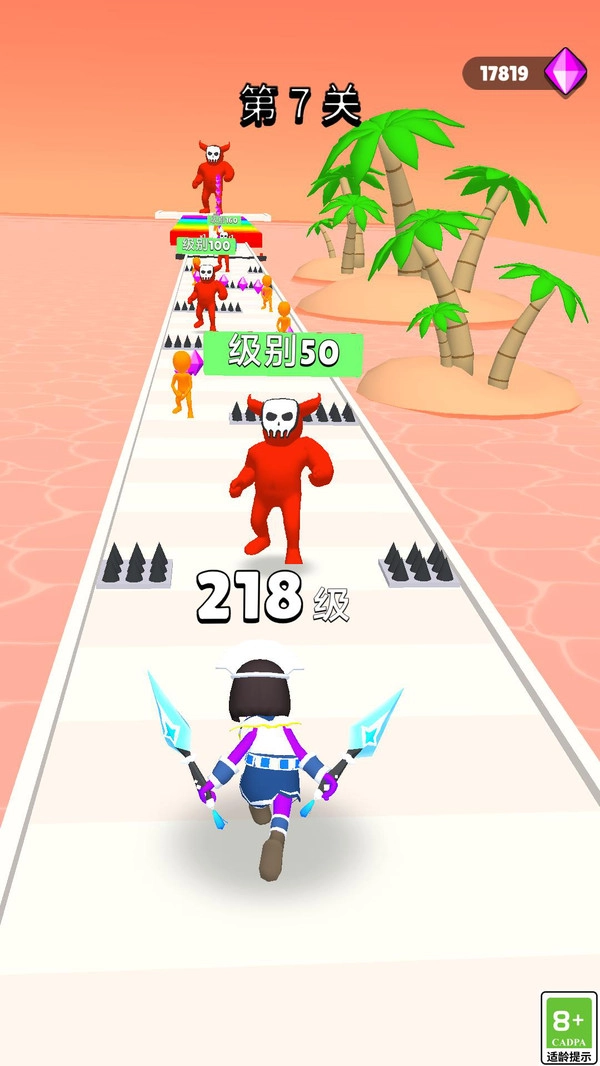 狂战冲刺是一款创新融合快节奏跑酷与爽快即时战斗的休闲闯关游戏。玩家将化身为身手矫健的战士,在自动生成的赛道上疾速狂奔。核心玩法是“冲刺即战斗”——你不仅要灵活躲避前方的陷阱与断崖,更得在高速移动中抓住转瞬即逝的战机。