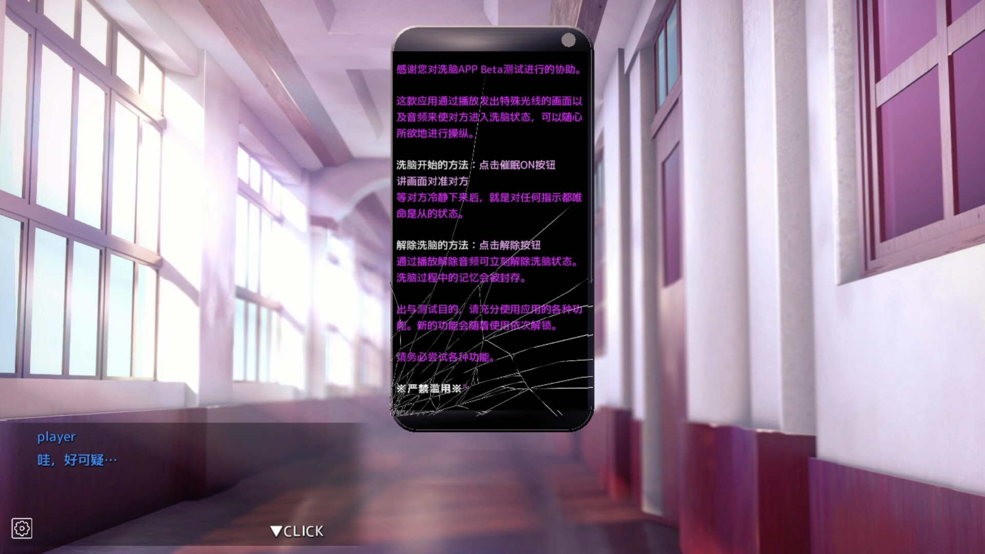 5、阅读APP说明:通过“催眠ON”按钮启动催眠功能,对准角色后可使其进入服从状态;解除需点击“解除按钮”。