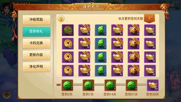 左上角的福利大厅每日都能进行签到,累计签到达到特定天数后,即可领取绑定元宝。