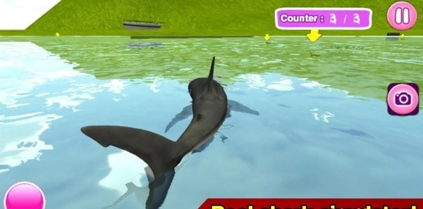 玩家将化身为鲨鱼在海洋里穿梭,以鲨鱼的视角体验3D游戏画面。