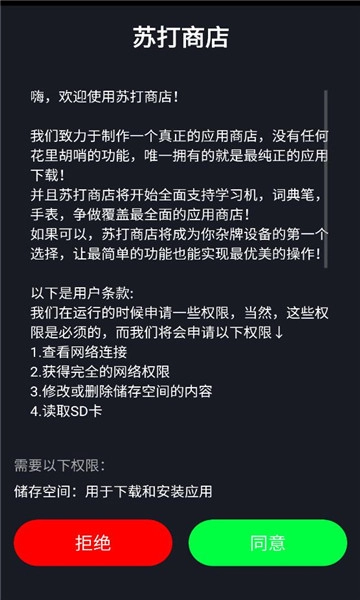 1、打开苏打商店app,点击同意