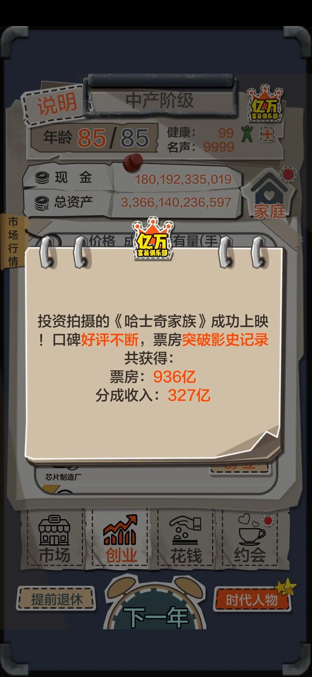 5、每年挑战王首富票房纪录(约300-700亿波动),把握高额奖金机会。