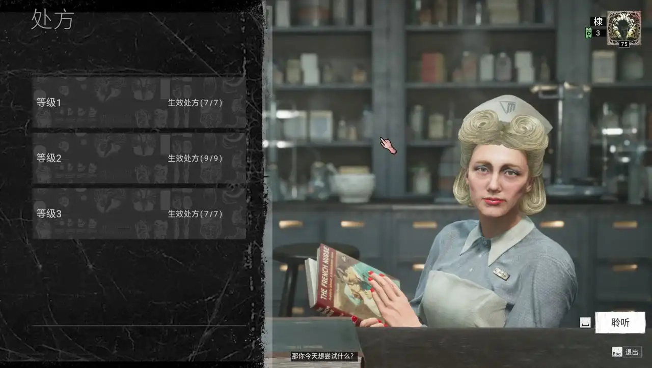 玩家在完成试炼或终端任务后,能得到奖励与经验;每次升级都会获得3张绿色票券,这些票券可在护士姐姐那里购买处方(如图所示)。